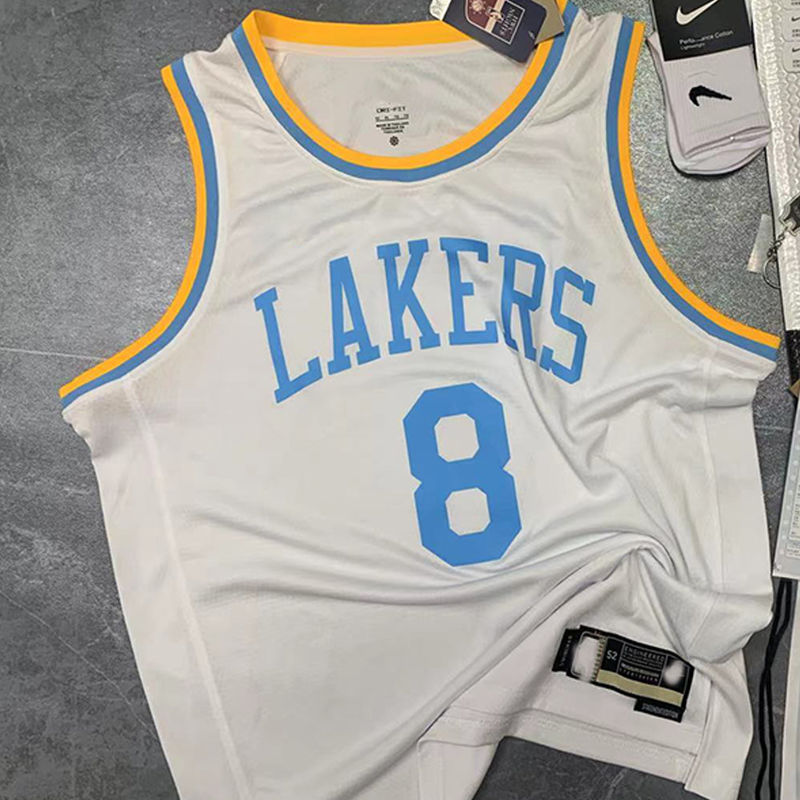 टाइमलेस ट्रिब्यूट: 23वां सीज़न व्हाइट रेट्रो एडिशन कोबी ब्रायंट #8 बास्केटबॉल जर्सी NBA टीम जर्सी12